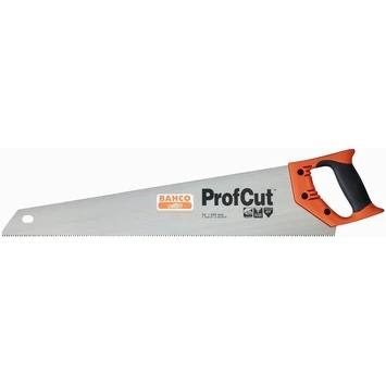 De Bahco ProfCut handzaag pc-22-gt7 is een professionele handzaag voor het zagen van middelgrof materiaal zoals hout, planken en plaatmateriaal. De facetgeslepen, superscherpe GT-vertanding garandeert uitstekende zaagresultaten. De tanden zijn extra gehard en blijven lang scherp. De handzaag is voorzien van een comfortabele tweecomponenten handgreep met extra schokdempend antislip-oppervlak. De handgreep is met schroeven bevestigd aan de zaag en kan gebruikt worden voor het markeren van 45° en 90° hoeken. De zaag wordt geleverd inclusief herbruikbare tandenbeschermer.
