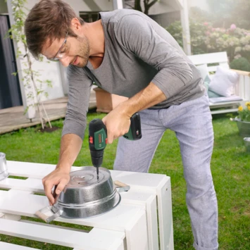 Met de accuschroefboormachine UniversalDrill 18 van Bosch bent u in één keer klaar. U haalt een krachtige en veelzijdige accuboormachine in huis. De Universal Drill 18 bevat de handzame en veelzijdige accuboormachine met twee Lithium-ion accu’s van 1.5 Ah en een 1-uurslader. Met deze schroefboormachine boort u moeiteloos in hout tot 30 mm en in metaal tot 10 mm. Door het geïntegreerde PowerLight beschikt u altijd over voldoende licht bij het schroeven en boren. De accuschroefboormachine UniversalDrill 18 van Bosch biedt u dus veel gemak en en urenlang klus comfort.