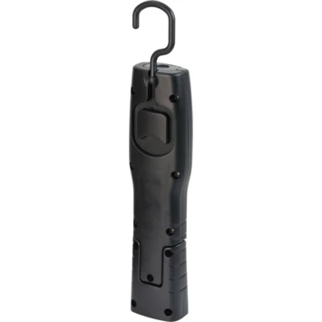 Deze compacte LED handlamp op accjeheeft 4 superheldere SMD-LED lampen en zorgen voor een hoge lichtopbrengt van 250 lumen. Bij een volledige opgelden accjekan de lamp tot wel drie uur gebruikt worden. De lamp heeft tevens een extra schakelstand voor 1 SMD LED aan de bovenzijde van de lamp en heeft een lichtopbrengt van 78 lumen. De knikbare voet en ingebouwde magneet zijn zwenkbaar tot +/-90° en is daardoor ideaal om de lamp in de juiste richting te plaatsen. De compacte lamp is voorzien van een 360° draaibare haak, ideaal om de lamp veilig op te hangen. Om de lamp op te kunnen laden wordt er een micro USB laadkabel meegeleverd.