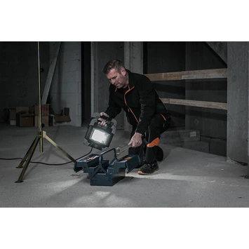 Mobiele LED-werklamp TORAN Optimale verlichting dankzij superheldere OSRAM LED’s. Traploze dimfunctie van 10 tot 100 % licht. Bluetooth-verbinding met smartphone en app voor bedienen van lichtfuncties: – Traploze instelling van lichtsterkte – Max. 5 werklampen regelbaar tegelijkertijd – Timer voor in- en uitschakeling. Aan-/uitknop en Bluetooth-knop.