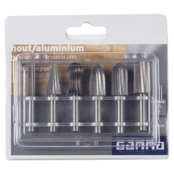 Met de 6-delige Gamma boorraspset haalt u een set raspen in huis voor op de boormachine waarmee u hout en aluminium kunt bewerken met een boormachine. De set bestaat uit 6 verschillende vormen met een diameter van 6mm of 12mm. Booraansluiting: 6mm.