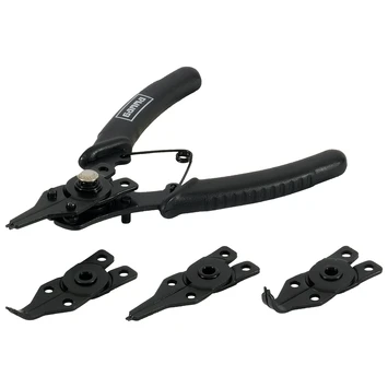 Met de GAMMA-borgveertang met bekkenset kunt u borgveren verwijderen of aanbrengen. Borgveren worden ook wel seegerringen genoemd. De borgveertang staat dan ook wel bekend onder de naam seegerringtang. Met deze speciaaltang is het mogelijk om borgveren van 12mm tot 25mm aan te brengen of te verwijderen. Deze borgveertang wordt geleverd met bekkenset, een set die bestaat uit 2 rechte en 2 gebogen uitwisselbare bekken. Deze bekken zijn geschikt voor inwendige en uitwendige veren. De borgveertang of seegerringtang is gemaakt van hoogwaardig staal en heeft kunststof handvatten. Hierdoor ligt de borgveertang met bekkenset fijn in de hand en is makkelijk te hanteren.