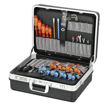 De gereedschapskoffer is gemaakt van ABS, een sterke kunststof, en heeft een frame van aluminium. Hierdoor blijft je gereedschap veilig in de koffer zitten als deze valt. De koffer is aan beide kanten uitgerust met een gereedschapsbord met insteekvakken en een documenten vak. Daarnaast heeft de gereedschapskoffer een ergonomisch handvat, combinatieslot van hoge kwaliteit en schouderriem. Hierdoor is de koffer makkelijk mee te nemen en kan het gereedschap veilig worden bewaard zonder dat er andere mensen bij kunnen. Kortom, de HEPCO&BECKER Gereedschapskoffer Basic XL 470x200x360mm is een ideale gereedschapskoffer voor de elke klusser.