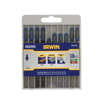 Irwin Pro Performance decoupeerzaagset IW1014505 is een 10-delige set met een mix van hout-/ en metaalzagen. De cassette bevat 7 houtzagen en 3 metaalzagen met diverse vertandingen voor een fijne tot grove afwerking. Ze zijn sterk, duurzaam en minder breekbaar. De decoupeerzaagbladen hebben een T-aansluiting. De zaagbladen passen ook op de nieuwste generatie decoupeerzagen die een universele aansluiting hebben.