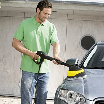 De Kärcher wasborstel WB 150 is ideaal voor de reiniging van kwetsbare oppervlakken, op bv. voertuigen, moto’s, glas, veranda’s, garagepoorten, rolluiken, rolgordijnen, tuinmeubelen, fietsen enz., zonder spatten. Deze innovatieve wasborstel met twee roterende vlakstraalsproeiers combineert een grote kracht met een zachte reinigingsactie. De nieuwe oppervlak- en terrasreiniger met zachte borstelharen combineert een hogedrukstraal met de manuele borsteldruk voor efficiënte reinigingsresultaten. De WB 150 bespaart niet alleen energie en water, maar ook tijd tot wel 30%. Een snelle, efficiënte en moeiteloze reiniging door hoge druk te gebruiken in combinatie met een borstel voor de reiniging van huis en tuin. De borstel past op alle Kärcher Home & Garden hogedrukreinigers uit de reeksen K 2 – K 7.