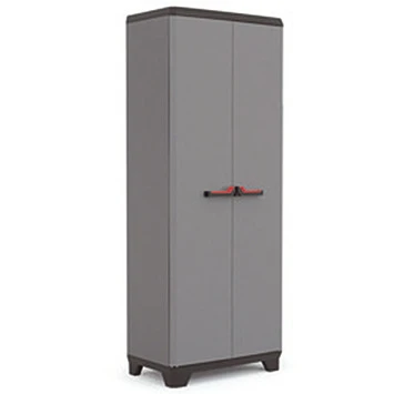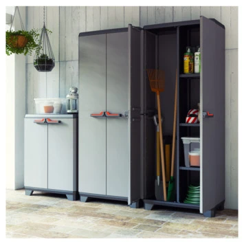 De Kis kunststof kast, Stilo, hoog is een ideale opberger voor diverse spullen. De hoge, lichtgewicht opbergkast is voorzien van twee vleugeldeuren en is vormgegeven in een strak design. De kast past dan ook in iedere ruimte, of het nu in huis, de schuur, de garage of op de werkplaats is. De kast zet u gemakkelijk in elkaar en de legborden zijn in hoogte verstelbaar. Zo kunt u de kast naar eigen wens indelen en gebruiken voor diverse spullen, zoals schoonmaakmiddelen, verfblikken, gereedschap, speelgoed, enz. Bovendien is de kast compact verpakt, zodat u deze eenvoudig kunt vervoeren. Kortom, met de Kis kunststof kast creëert u gemakkelijk extra opbergruimte.