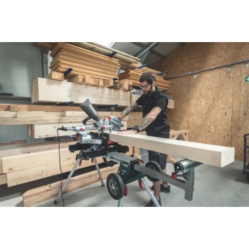 Met de Metabo KGS 216 M afkortzaag kun je nauwkeurig in hout, houtpanelen en MDF-platen zagen. De afkortzaag heeft een trekfunctie zodat je er ook dikkere en bredere balken tot maximaal 305mm breedte en 65mm hoogte mee kunt zagen. De zaag weegt slechts 14kg en heeft ergonomische draaggrepen. Dat maakt het eenvoudig om hem met één hand te vervoeren.
