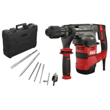 De pneumatische SKIL 1781 boorhamer met drie functies heeft een zeer krachtige 1500W motor en een vooraf instelbare snelheid voor optimale controle. Het gereedschap heeft een hamermechanisme voor boren in beton, een hamerstopfunctie voor normale boorklussen en een rotatiestopfunctie voor beitelklussen. Dankzij het trillingsreductiesysteem (‘VRS’), de comfortabele L-vorm en de robuuste magnesiumbehuizing is deze boorhamer bij uitstek geschikt voor zware klussen waarbij tot 36 mm in beton geboord of gebeiteld moet worden. Met het ‘SDS+’ systeem kunnen accessoires snel en eenvoudig worden gewisseld. De antislip softgrip en de verstelbare trillingsreducerende zijhandgreep maken een comfortabele bediening met twee handen mogelijk. Met de handige diepteaanslag kunt u de boordiepte voor blinde gaten instellen. De SKIL 1781 GB wordt geleverd in een stevige koffer, inclusief een set van drie ‘SDS+’ betonboren van 8, 10 en 12 mm, een puntbeitel, een vlakke beitel en een 13 mm-boorkop met ‘SDS+’ adapter.