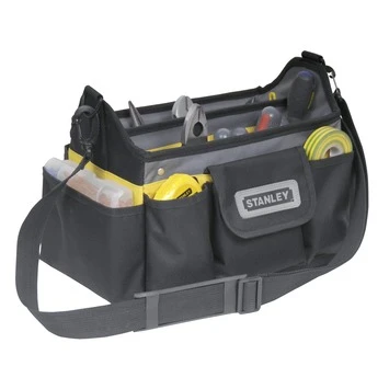 De gereedschapstas heeft een open ontwerp zodat je snel en eenvoudig bij alle benodigde gereedschappen en onderdelen kan. De tas heeft verticale vakken waar gereedschap rechtop in kan staan, hierdoor heb je de tas netjes georganiseerd en kan je makkelijker bij de gereedschappen. Daarnaast heeft de tas voor gereedschap ook nog een paar kleinere vakken die uitermate geschikt zijn voor het opbergen van kleine onderdelen zoals schroeven en spijkers. De tas kan eenvoudige door middel van een schouderriem worden gedragen. Zo heb je je handen vrij wanneer je dat nodig hebt. Kortom, met de Stanley Open Gereedschapstas 12 inch kan je je gereedschap snel en eenvoudig opbergen.